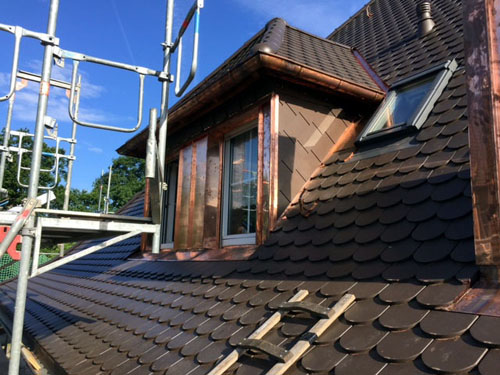 Anspruchsvolle Verkleidung der Gaupendächer in Stehfalz- und